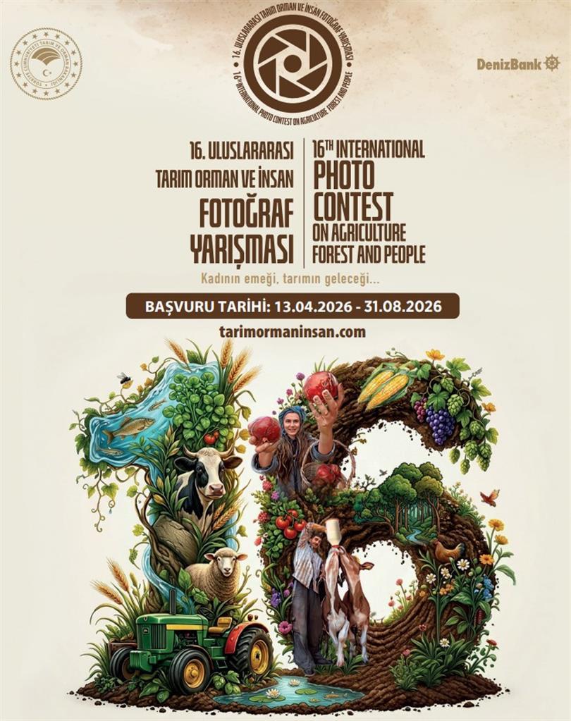 Tarım ve Orman Bakanlığı Eğitim ve Yayın Dairesi Başkanlığı tarafından DenizBank’ın destekleriyle düzenlenen 16. Uluslararası Tarım Orman ve İnsan Fotoğraf Yarışması (UTOİFY) başlıyor. Tarımın, ormanın, toprağın, gıdanın ve suyun önemi konusunda bireysel ve toplumsal duyarlılığın geliştirilmesini amaçlayan yarışma Genel, Çiftçi, Öğrenci, Tema, Tarım ve Orman Bakanlığı Çalışanları ile DenizBank Çalışanları olmak üzere 6 farklı kategoride gerçekleştirilecektir. 2026 yılı “Tema Kategorisi”nin konusu "Kadının Emeği, Tarımın Geleceği" olarak belirlenmiştir.Yarışmacılar; tarım, orman, hayvancılık, toprak, su, su ürünleri, gıda ve muhafazası, her türlü tarım hareketliliğinin işlenmesi, üretici, çiftçi, çoban, köylü ve köy yaşamına dair faaliyetleri konu alan fotoğraflarla yarışmaya katılabilecekler. Başvuruların 13 Nisan'da başlayacağı yarışmaya 31 Ağustos 2026 tarihine kadar eser gönderilebilecektir.Yarışmanın sonuçları 28 Eylül - 28 Ekim 2026 tarihleri arasında açıklanacaktır. Daha sonra düzenlenecek törenle kategorilerinde dereceye giren eserlere ödülleri verilecektir.Toplam Ödül: 1 milyon 735 bin Türk LirasıBaşvuru Tarihleri: 13 Nisan 2026 - 31 Ağustos 2026