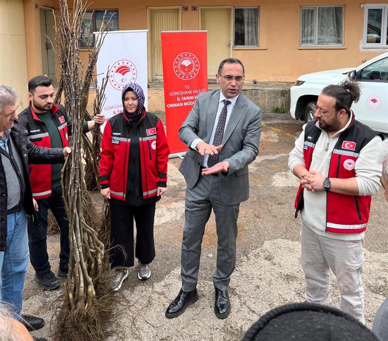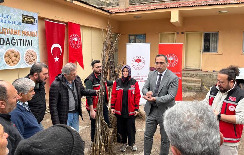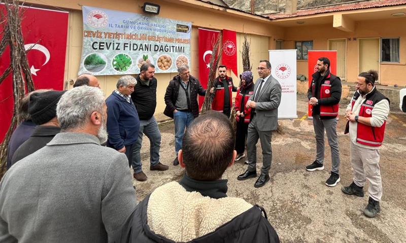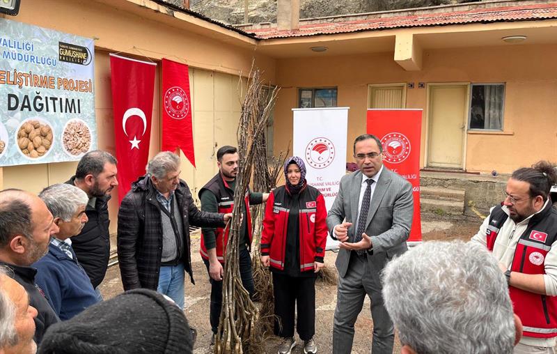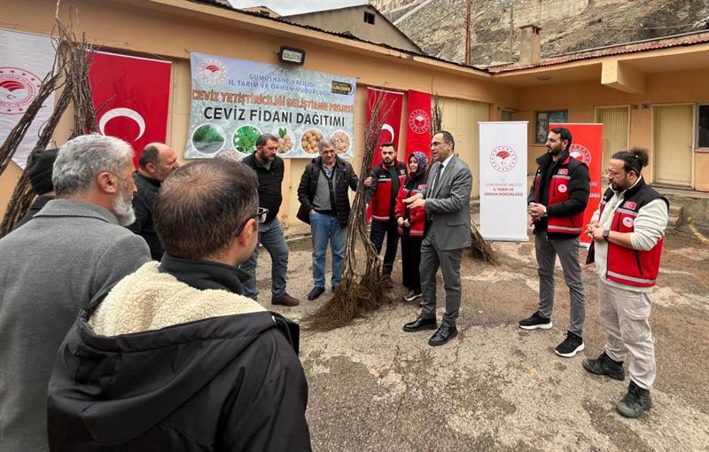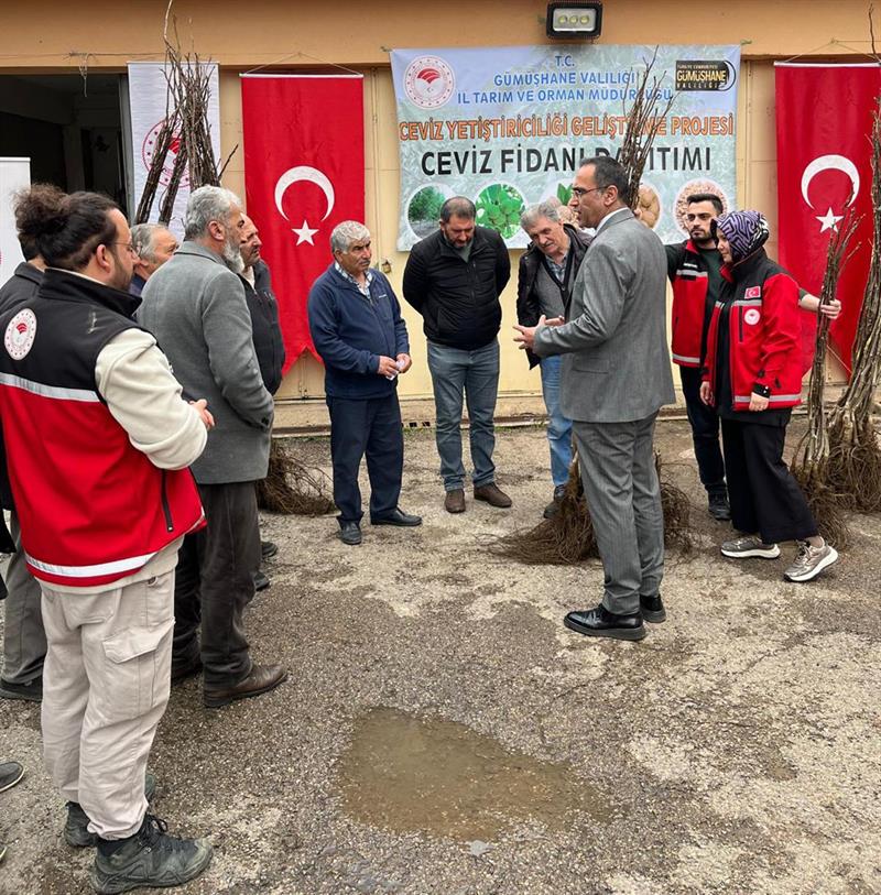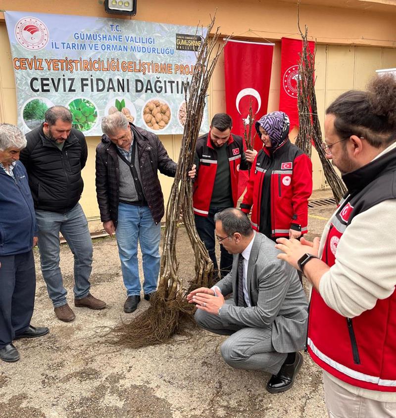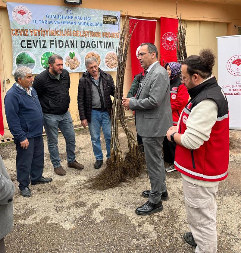 Gümüşhane'de tarımsal üretimin artırılması ve ceviz yetiştiriciliğinin geliştirilmesi amacıyla hazırlanan “Ceviz Yetiştiriciliğinin Geliştirilmesi Projesi" kapsamında üreticilere yüzde 50 hibeli ceviz fidanı dağıtımı gerçekleştirildi.