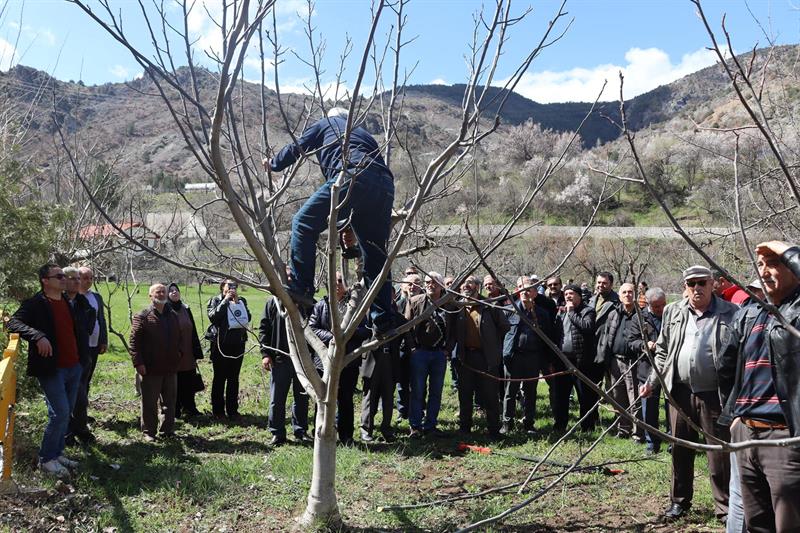 Teorik bilgilerin saha uygulamalarıyla desteklenmesinin önemine dikkat çeken Kıraç, eğitimlerde budamanın yanı sıra hastalık ve zararlılarla mücadele, bahçe bakımı, gübreleme, sulama ve aşılama konularında da üreticilere bilgi verildiğini kaydetti.